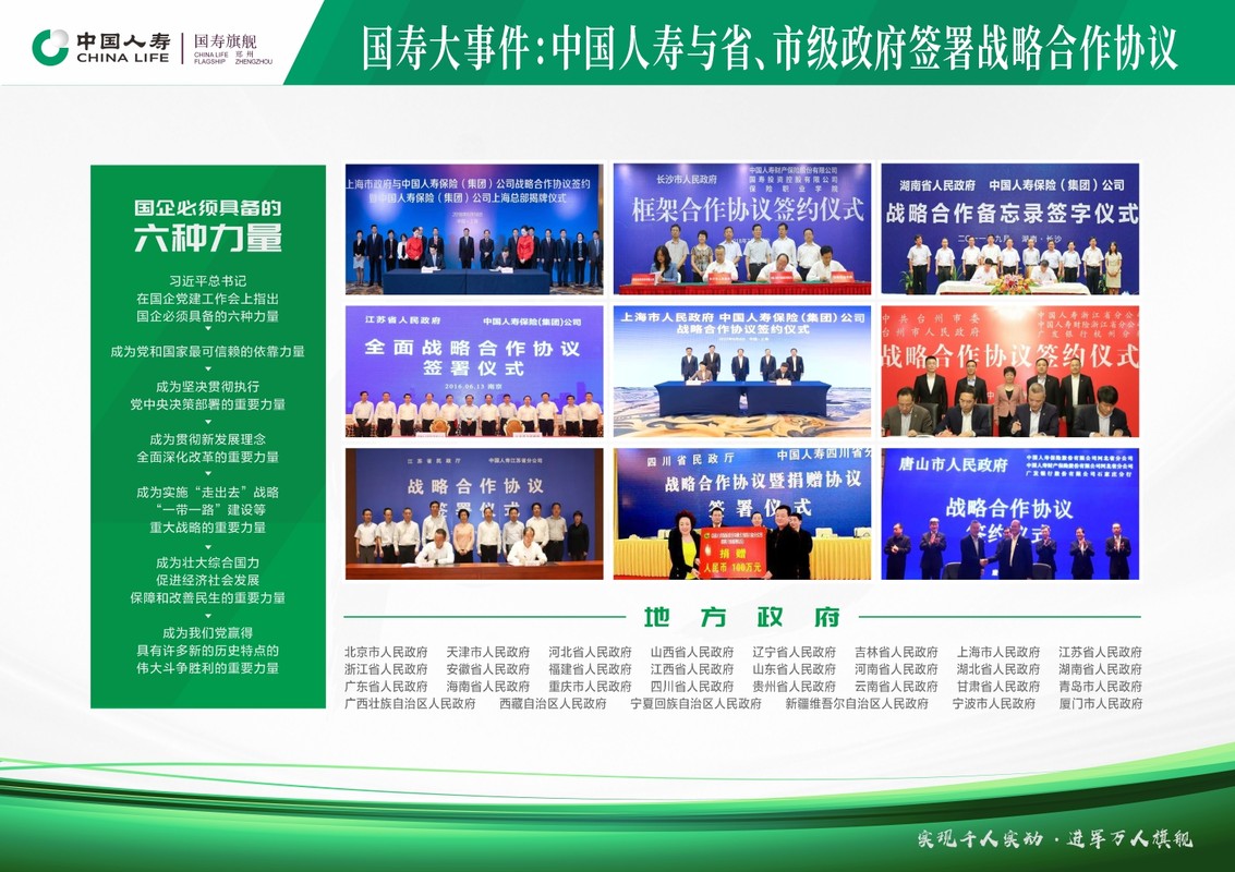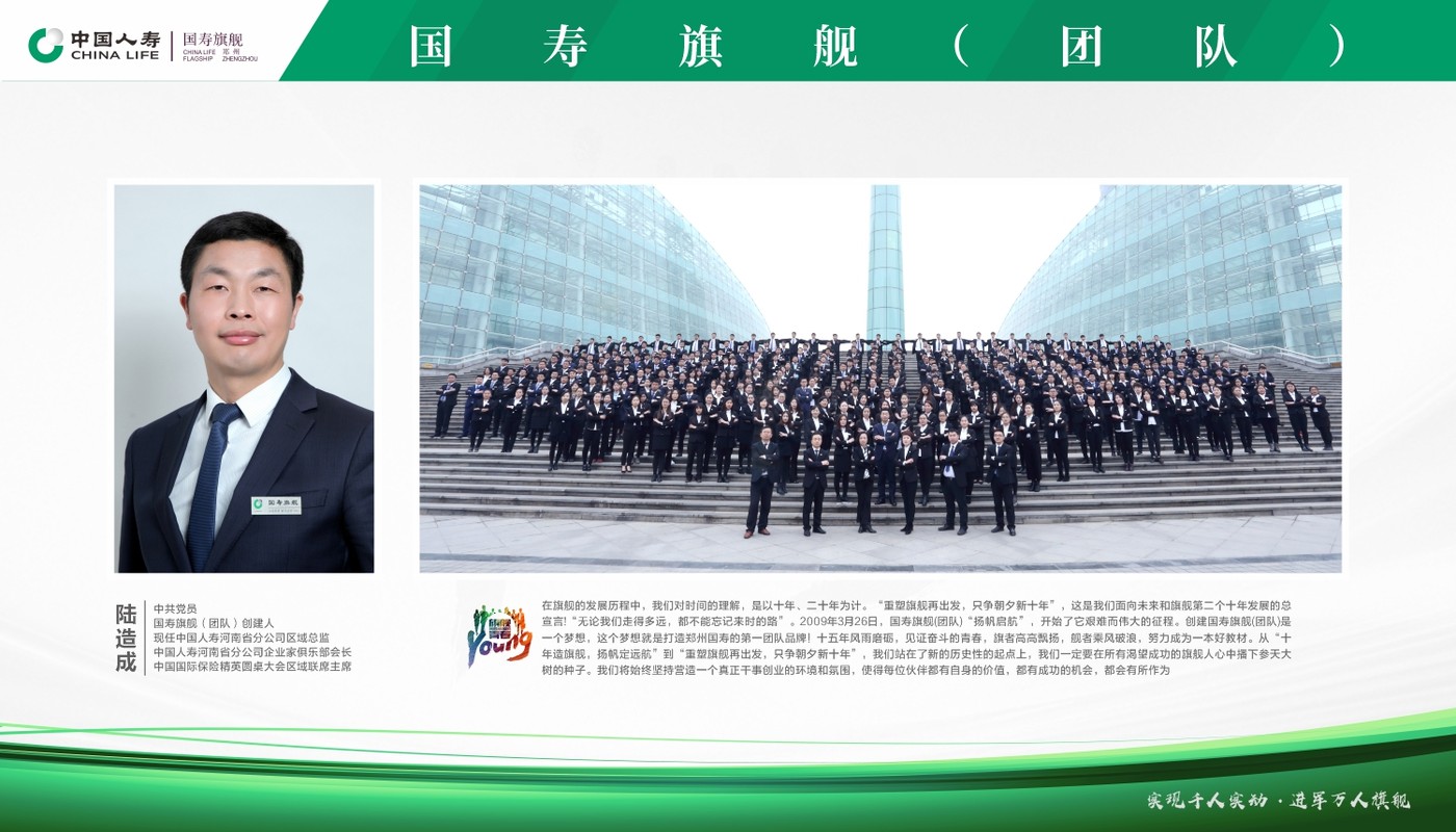 中国人寿保险(集团)公司是目前国内最大的综合性保险集团,是国务院100%控股的世界500强副部级央企。下设中国人寿保险股份有限公司、中国人寿资产管理有限公司、中国人寿财产保险股份有限公司、中国人寿养老保险股份有限公司等多家公司和机构,业务范围全面涵盖寿险、财产险、养老保险、资产、实业投资、海外业务等多个领域。 中国人寿是中信证券第二大股东、广东发展银行第一大股东、民生银行、中粮期货、南方电网第二大股东。 中国人寿郑州市分公司招募首批新型大学生服务团队中国人寿郑州市分公司一直服务于郑州市城乡建设,在郑州市所有县区设立分支机构,在全市80%以上的乡镇设立服务部,目前服务窗口正在向村级延伸。自2001年起,开始陆续为河南省省直机关以及郑州市220万城镇职工、城镇居民提供大额补充医疗服务,具有常年经营意外保险、健康医疗保险以及政府委托经办业务等丰富的管理经验和能力。2011年,在郑州市政府的支持下,中国人寿郑州市分公司创新性地经办了新农合业务,并于2013年开始承办农村居民大病保险业务,服务于430万农村居民,“郑州模式”得到全国广泛关注。