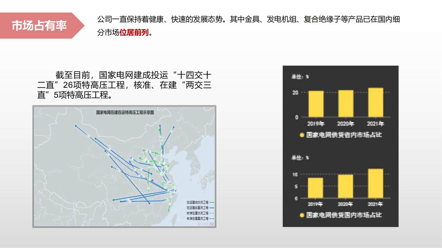 我司积极开拓国内外市场,是国家电网、南方电网的重要供应商之一,也成功供货给日本东京电力公司、加拿大萨省电力公司、美国洛杉矶水电、越南国家电网、马来西亚沙捞越电力公司等境外电力公司。我司积极配合国内外知名国际工程公司,在缅甸、老挝、巴基斯坦、肯尼亚、埃塞比亚、苏丹、厄瓜多尔等国家,设计供货相关产品或材料。