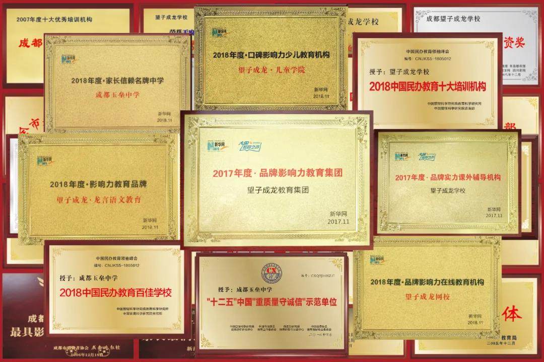 望子成龙教育集团旗下的成都玉垒中学,得名于杜甫名句“锦江春色来天地,玉垒浮云变古今”,是一所经教育局批准成立的全日制住读式民办学校,是一所功能齐备。环境优美,宜于学习的园林式学校。