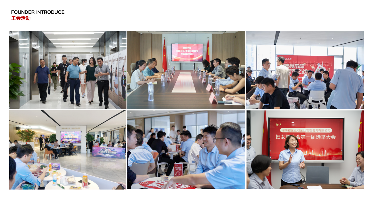 公司简介银企互动集团成立于河南郑州,秉持“只为客户提供有价值的服务”的核心价值观,为全类型企业提供一站式综合服务。多年来,银企互动集团在企服领域持续深耕且不断创新,目前已经成长为一家拥有1000多名员工,业务布局深圳、郑州、合肥、济南、太原、武汉等80多座城市的集团性公司。历经八年的发展与沉淀,银企互动集团已经成为国内的知名一站式企业服务平台,业务内容涵盖丰富,包括:金融服务、法律服务、知识产权、人力资源、工商注册、税务筹划、信用管理、程序开发等核心业态。八大业态相辅相成,覆盖企业全生命周期,已累计服务客户超过15万家,收获了市场和客户的双重认可,被授予“重服务守信用单位”、“诚信示范单位”。多元业务的强劲发力,不仅推动了银企的创新发展,同时也提升了集团穿越市场周期的可持续竞争力。坚持党对一切工作的领导、加强党的建设是银企互动集团的“根”与“魂”。集团始终坚持党建引领,在上级党组织的见证下,相继成立党支部、工会委员会和妇联,以党建引领集团高质量发展。企业文化党建:党建引领,实事求是使命:让中小微企业老板,省时省力更省心愿景:成为有实力、受尊重、可信赖的咨询公司推动行业规范化发展让每个银企人成为家庭的骄傲核心价值观:价值效率、全力以赴、诚信守法、变化发展、尽职尽责发展历程2017年,银企互动前身卓沣融通成立,开启在企服领域的篇章。2018年,布局一线城市,进军深圳市场。2019年,山东分公司成立。2019年,积极响应国家普惠金融政策,全面聚焦中小微企业,助力民营经济发展。2020-2022年,山西、安徽分公司成立。2022年,正式启用银企互动品牌,致力于建立一站式企业服务平台。2023年,集团成立相继成立党支部、工会、妇联。2023年,业务范围增加至八大核心版块,开启企服新时代。2024年,集团全新战略规划启动,正式迈进全国一流集团化企业的征程。获得荣誉“金水区先进基层党组织” “爱心单位”“重服务守信用企业” “中国诚信企业家”“3A级诚信企业”“中国企业助贷服务⾏业诚信示范单位”2021年郑州 7·20 特大暴雨中,累计捐款捐物近20万元, 被郑州红十字会、荥阳防汛抗旱指挥中心授予证书;2023年为河南省慈善总会捐款10万多元,被河南金水区党工委、金水区街道办、金水慈善总会授予证书;2024年集团党支部荣获“金水区先进基层党组织” ,支部党员荣获“优秀党员志愿者”、“优秀党务工作者”。