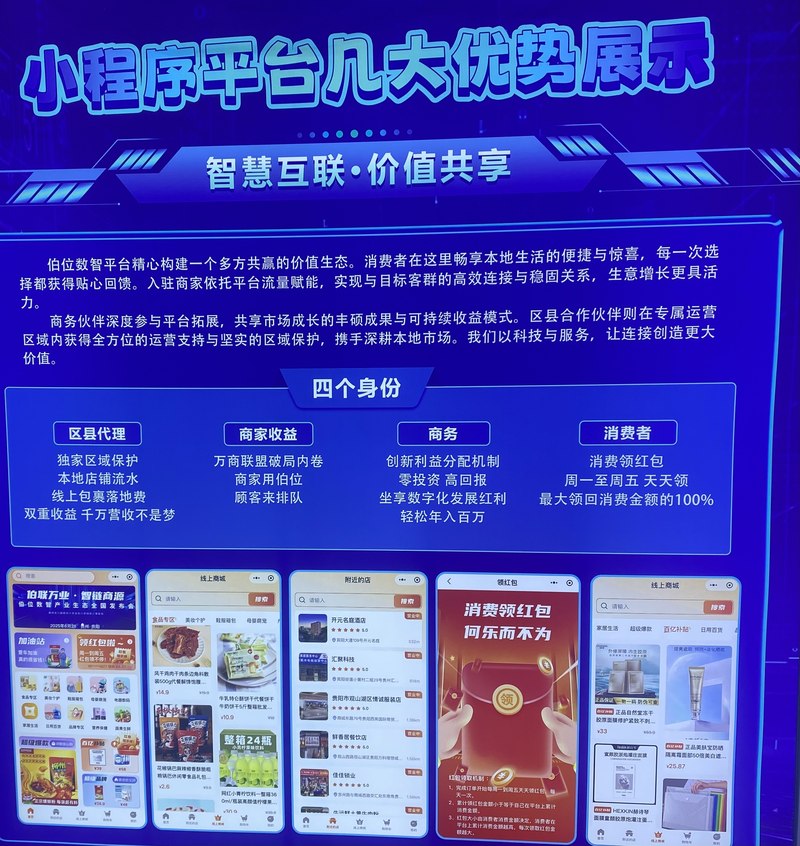 伯位数智,一个通过云计算、大数据、AI技术赋能实体店锁客、增长、用户裂变,同时为用户竭诚提供涵盖衣食住行等多个领域的精细化、专业化生活服务平台。 贵州伯位信息科技有限公司成立于2024年,立足“中国数谷”贵州贵阳,依托国家大数据(贵州)综合试验区的政策东风与深厚产业根基,公司秉持“科技赋能未来”的理念,以大数据、人工智能、区块链等前沿技术为笔,绘就数字经济与实体经济深度融合的时代画卷。 贵州贵阳,作为国家大数据综合试验区的核心枢纽,政策红利与资源禀赋得天独厚。 贵州伯位信息科技有限公司积极响应国家“数字中国”战略与地方发展规划,持续加大研发投入,锻造硬核技术创新实力,深度融入贵州大数据产业发展版图。 公司精准把握贵州省、贵阳市数字经济发展契机,以技术创新为纽带,将消费者、实体商家与创业者紧密相连,构建起“无痛消费、流量倍增、创业赋能”的智能行业新生态,恰似“珠联璧合”,激活数字经济新动能。